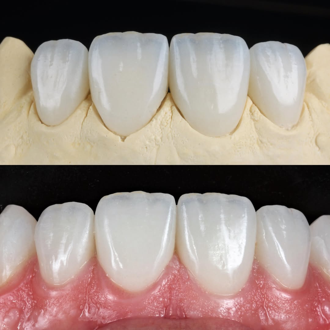 Todo o processo acontece em nosso laboratório próprio, sob os mais altos padrões de qualidade, e se completa no consultório com uma aplicação harmônica, delicada e imperceptível.